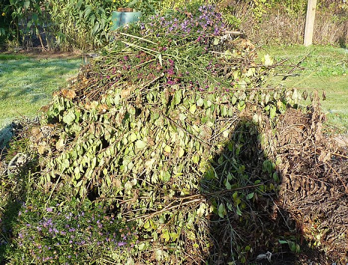 Wir wollen mal hoffen, dass der Gartenfreund, der diesen Haufen aufgetürmt hat, bis zum Frühjahr wartet, ehe er ihn ansteckt. Von trockenem Baum- und Strauchschnitt kann hier wohl nicht die Rede sein. Das muss einfach qualmen, wenn der in Brand gesteckt wird, selbst wenn man noch paar Tage wartet.