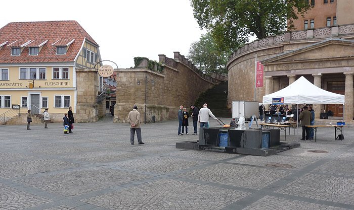 So war es dann eher das gewohntere Bild, dass die Mitglieder des Rotary Clubs sich selbst unterhalten mussten, mangels an Besuchern. Wolfgang Wytrieckus, der am frühen Vormittag bereits ca. 50 Mitglieder des Herbstsymposions der Stiftung Thüringer Schlösser und Gärten durch die Cruciskirche geführt hatte, war genau so enttäuscht. Die Bevölkerung nimmt es einfach als Selbstverständlichkeit hin, dass man gegen diese schwere Krankheit geimpft ist, so Wytrieckus. Was gehen mich die Leute an, die in Entwicklungsländern nicht mal für so eine Lebensnotwendigkeit wie dieser wichtigen Impfung das Geld haben, haben offensichtlich zu viele gedacht. .