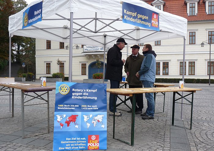 Der Rotary- Aktionstag mit einer Spendensammlung zum Kampf gegen die Kinderlähmung soll beitragen, so der Governor des Rotary Distrikts 1950 (Professor Dr. Karl Heinemeyer), in dem 62 Clubs mit mehr als 2500 Mitgliedern aus Thüringen und Bayern zusammenarbeiten, dass die Kinderlähmung nun auch weltweit ausgerottet wird.
