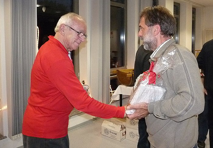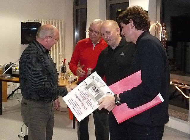 Erstmals in Sondershausen dabei eine Mannschaft aus Lübeck, die sich sehr freute, dabei gewesen zu sein. Deren Mannschaftsführer über gab an Dieter Grabe (im Bild links) ein kleines Präsent, verbunden mit einer Einladung nach Lübeck zum dortigen Sieben Türme-Turnier. In diesem Zusammenhang lud Torsten Kawaletz auch schon alle Mannschaften zum 3. Karl Heinz Peter Gedächtnisturnier im nächsten Jahr ein, dass mit einem wichtigen Höhepunkt verknüpft ist: 20 Jahre BRSG Kyffhäuser e.V.. Deshalb wird das nächsten Turnier im Juni, und nicht wie bisher im Oktober stattfinden.