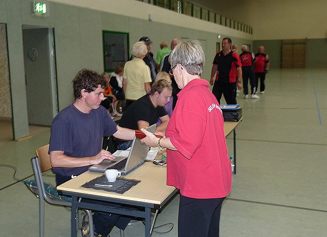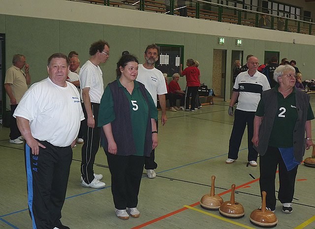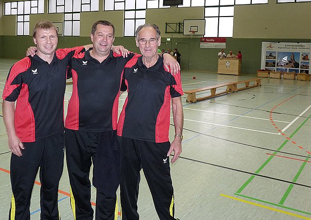 Denn Torsten Kawaletz konnte sich auch noch über einen dritten Platz seiner ersten Mannschaft bei den Männer freuen. Da mussten sich die Gäste ganz schön strecken, um nicht völlig abgehängt zu werden. Als Zweiter rettete die BSG Paderborn die Ehre der Gäste, und erhielt auch noch das Lob, die lustigste Truppe zu sein. Das Karl Heinz Peter Gedächtnisturnier ist benannt nach dem ersten Landesvorsitzenden des Thüringen Behindertensportverbandes, der auch federführend bei der Gründung der BRSG Kyffhäuser dabei war.