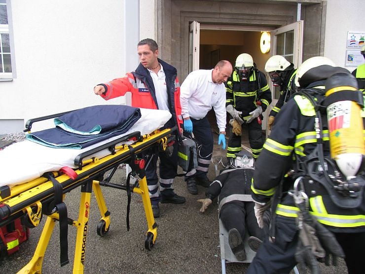 Drei Minuten später waren die Einsatzkräfte mit drei Löschfahrzeugen vor Ort. Polizei und Rettungsdienst folgten 10 Minuten später. Nachdem die Kameraden der Berufsfeuerwehr wie unter realistischen Bedingungen über die Drehleiter eine Person retteten, diese durch den Rettungsdienst versorgt wurde, war die Übung bereits 10.05 Uhr beendet und die Schüler konnten wieder in ihre Klassen.