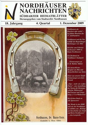 Über die Entstehung des Hasse-Denkmals und die Rolle, die der Arzt Hermann Oskar Hasse in der Medizin und in Nordhausen spielte, schreibt Hans-Jürgen Grönke. Paul Lauerwald untersucht die Geschichte des Buchdrucks im 17. Jahrhundert in Nordhausen. Dabei geht es vor allem um den Druckort Nordhausen. 1628 eröffnete Johann Ersamus Hynitzsch die erste Buchdruckerei in der Freien Reichsstadt. Einen weiteren Drucker, Christian Gutfreund, beleuchtet der Autor dann ausführlich.Michael Kruppe setzt sich mit der Türkenhilfe auf dem Regensburger Reichstag von 1663 und der Rolle Nordhausens bei dieser Beratung auseinander. Im Bericht über das Februarhochwasser 1909 im Raum Nordhausen wird von Dr. Mathias Deutsch die Katastrophe an der Helme und ihren Folgen untersucht. An den Stadtarchivar R. H. Walther Müller erinnert ein Beitrag von Fritz Reinboth.