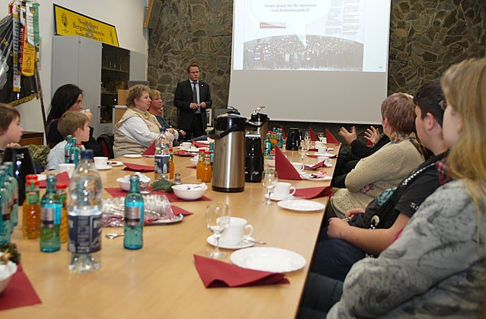 Schachtbau-Geschäftsführer Jens Peters stellte den Mitgliedern der Fördervereine, den Schulleitern sowie einigen Schülern das Unternehmen vor. Ausgehend vom unternehmerischen Leitbild zeichnete Peters das Porträt eines international ausgerichteten, erfolgreichen und profitabel wachsenden Technologieunternehmens mit motivierten Mitarbeitern.