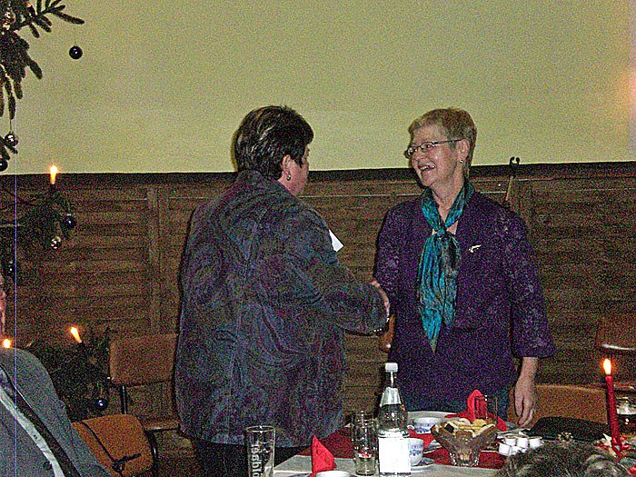 Noch eine Besonderheit gibt es in diesem Ortsverband. Zu besonders wichtigen Veranstaltungen - und dazu gehört auch die Weihnachtsfeier - könnte hier gleich die Bürgermeisterdienstberatung stattfinden. Für die Landtagsabgeordnete Gudrun Holbe, Bürgermeisterin von Donndorf, den Bürgermeister von Roßleben, Rainer Heuchel ,und die Bürgermeisterin von Wiehe Dagmar Dittmer sind diese Termine fester Bestandteil ihrer Arbeit So nahmen sie auch an dieser Weihnachtsfeier teil, dankten für das ehrenamtliche Engagement der Mitglieder des Verbandes, das sie übereinstimmend sehr wichtig finden, sei es im Sozialrecht, bei Barrierefreiheit oder aber auch zur Geselligkeit. Sie hatten alle drei einen kleinen Briefumschlag mit, der natürlich gern entgegen genommen wurde ohne nach der Summe zu fragen.