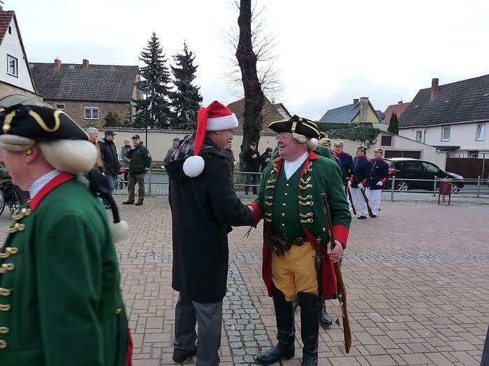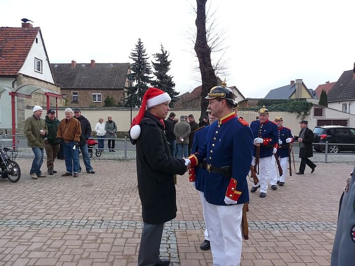 Das Mittagessen konnte man heute Mittag in Roßleben in der Nähe des Schulplatzes nicht verschlafen. Spätestens mit den ersten Salutschüssen des 3. Thüringischen Infanterieregiments Nr. 71 und den Schützen des Großkaliberschützenvereins Bottendorf 1991 e.V. ist bestimmt auch letzte Roßleber erwacht und hat gemerkt, dass er die erste Feier des Tages verpasst hat.