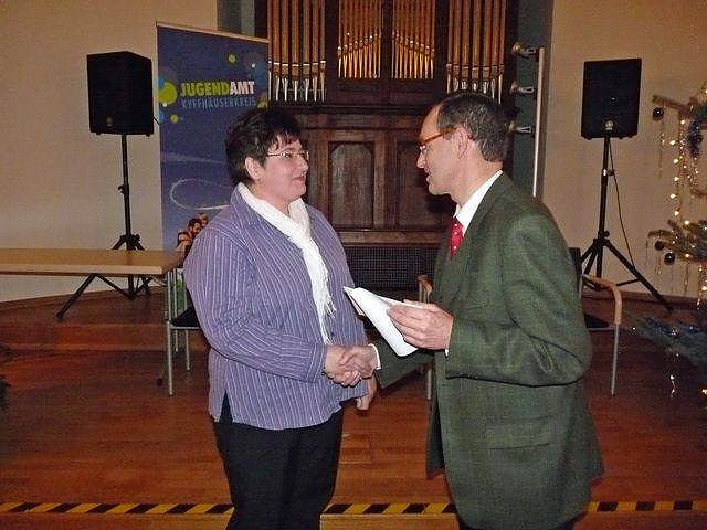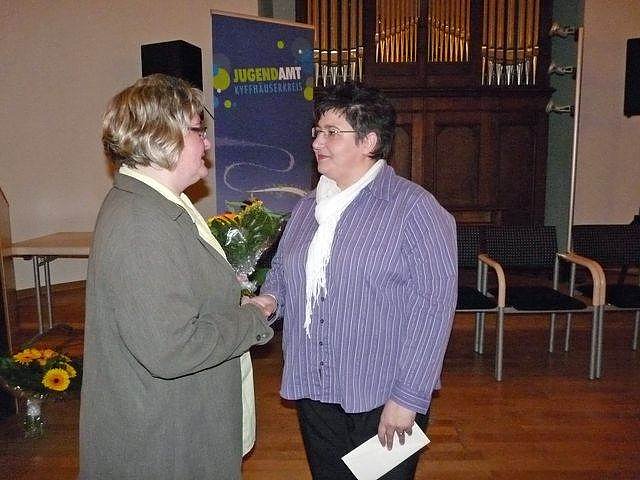 Zur Unterstützung der Leiterin des Sozialen Dienstes im Kyffhäuserkreis, Jutta Gebauer, wurde im Landratsamt eine weitere Stelle (Jutta Finke) geschaffen, um die Pflegeeltern noch besser unterstützen zu können, so der 1. Beigeordnete des Landrates, Georg Schäfer. Schäfer würdigte die geleistete Arbeit von Jutta Gebauer und Jatta Finke, genauso wie Bürgermeister Joachim Kreyer und die Vorsitzende des Jugendhilfeausschusses des Kyffhäuserkreises, Cornelia Kraffzick, die Arbeit des Jugendamtes unter Leitung von Sabine Bräunicke würdigte.