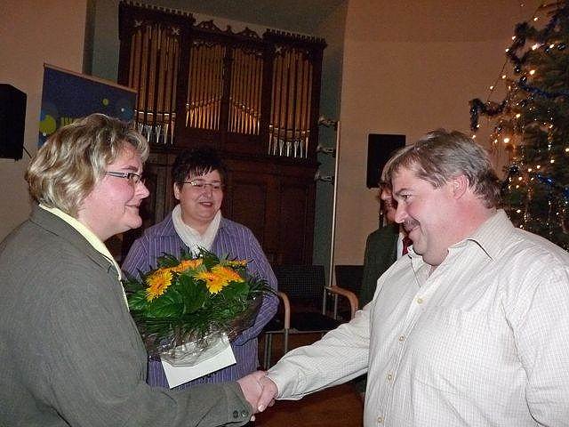 Sondershausen Bürgermeister Joachim Kreyer würdigte in seiner Laudatio die Anstrengungen der Familie Meixner aus Schernberg, Die Stadtwerke Sondershausen würdigten die Leistungen mit einer Aufmerksamkeit.