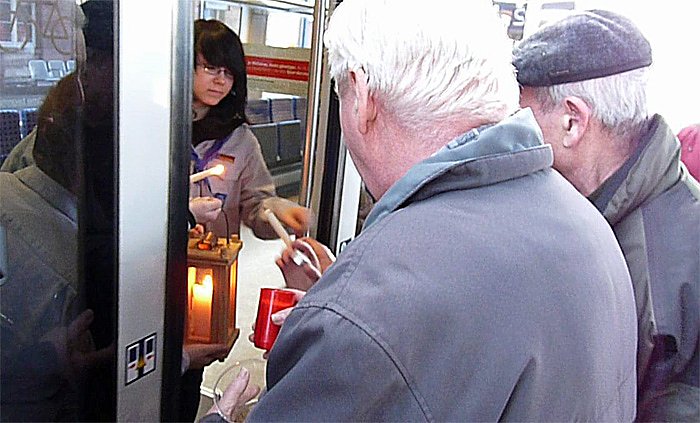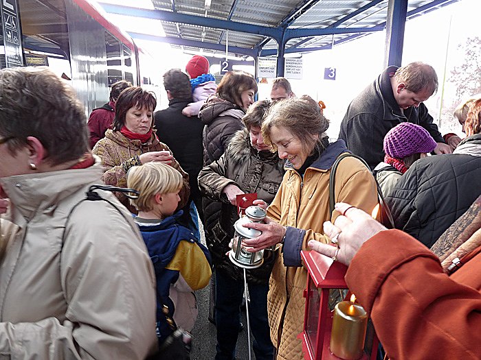 Am Hauptbahnhof Sondershausen hatten sich dieses Jahr deutlich mehr Interessenten für das Friedenslicht eingefunden, als voriges Jahr. Bis aus dem entfernten Keula war heute wieder gekommen.