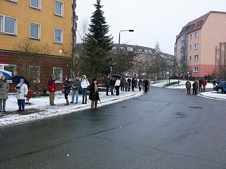 Auch wenn dieses Jahr etwas Schnee lag, bei dem nebligen Wetter kam man nicht so richtig in Weihnachtsstimmung. Das änderte sich aber schlagartig, als vom Turm die ersten Töne erklangen. Auch wenn der Beifall auf dem Turm bei den Bläsern etwas leise ankam, gab es wohl keinen Zuhörer, dem es nicht gefallen hat. Aber das so wenig geklatscht wurde hatte noch einen ganz anderen Grund.
