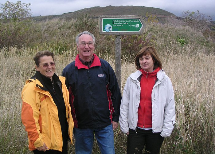Teilnehmer der Ortsbegehung auf den Salzwiesen an der Landesgrenze, v.l.: Frau Iris Breuer vom Naturpark "Saale-Unstrut-Triasland" e.V., Jürgen Kimmel, Umweltgruppe Roßleben, Frau Petra Wiegel, LRA Burgenlandkreis - Der Naturlehrpfad der UNESCO-Projektschule weist seit Jahren schon auf die Besonderheiten der Tier- und Pflanzenwelt hin - nun soll verstärkt auf die einzigartige Natur hingewiesen werden (Foto: König)