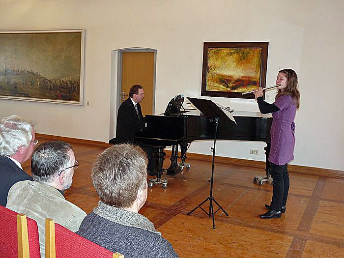 Für die vielen Geschenke bedankte sich Renate Weinert auf besondere Art. Sie schenkte den Gratulanten eine Stunde Musik. Mit Ronald Uhlig (Klavier) und Kristin Lovsky (Querflöte) hatte Weinert mehr als nur einen sehr guten griff gemacht. Mit sehr viel Beifall bedankten sich die Gratulanten, die nun selbst beschenkt worden waren.