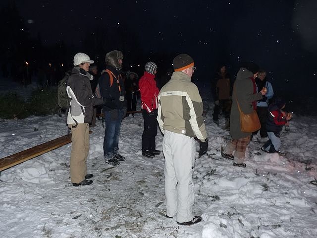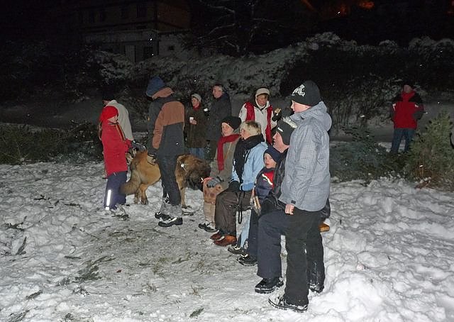 Am Glühweinstand hatten die vielen Helferinnen um Vereinssprecherin Helga Wenzel (Bildergalerie) alle Hände voll zu tun, um die vielen Besucher (bestimmt am Anfang ca. 200) versorgen zu können. Denn der Durst auf Glühwein war kaum zu stillen. Einen guten Anteil daran hatte die Kälte, dass man oft lieber gleich Glühwein mit Schuss verlangte. So war es nicht verwunderlich, dass es am Glühweinstand sogar zur Schlangenbildung kam. Ganz hartgesottene tranken trotz der Kälte Bier. Um das Feuer kümmerte sich u.a. Detlef Koch (Bildergalerie).