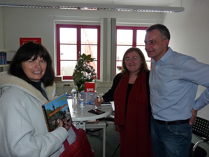 Einen kurzen Weg zur Gratulation hatte eigentlich die Kreisvorsitzende der SPD, Cornelia Kraffzick. Ihr Parteibüro befindet sich im gleichen Stockwerk auch noch auf dem gleichen Flur. Im Prinzip hat sich jetzt eine regelrecht Parteizentrale des Kyffhäuserkreises gebildet.