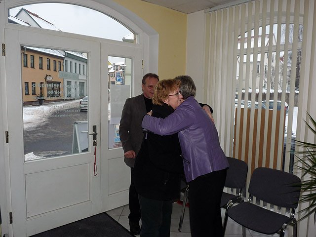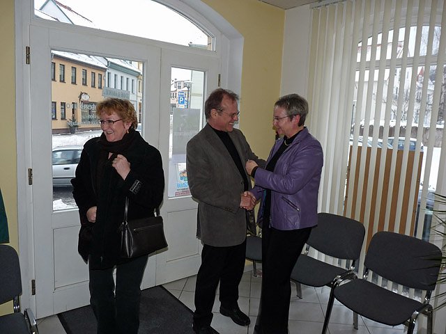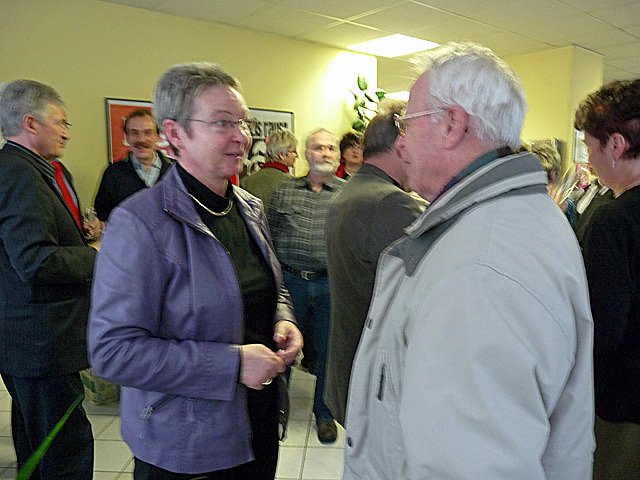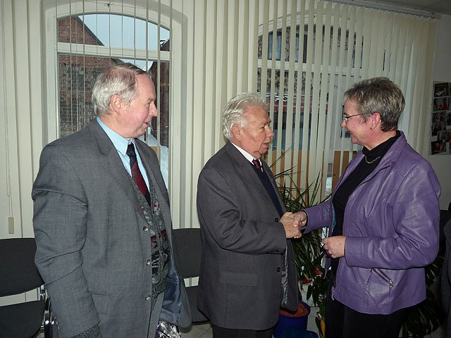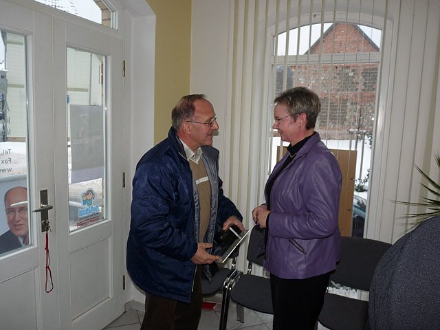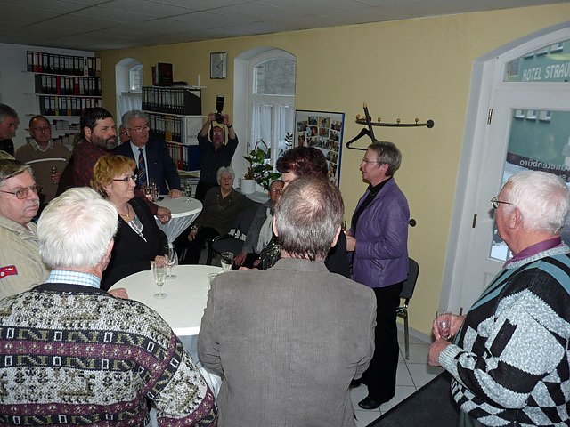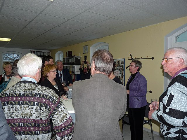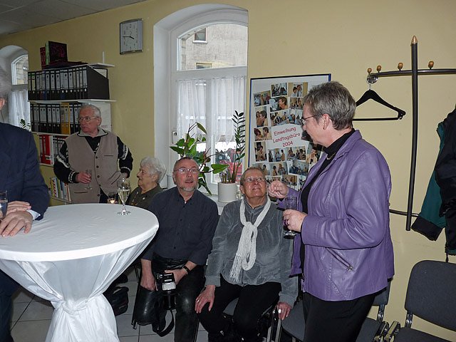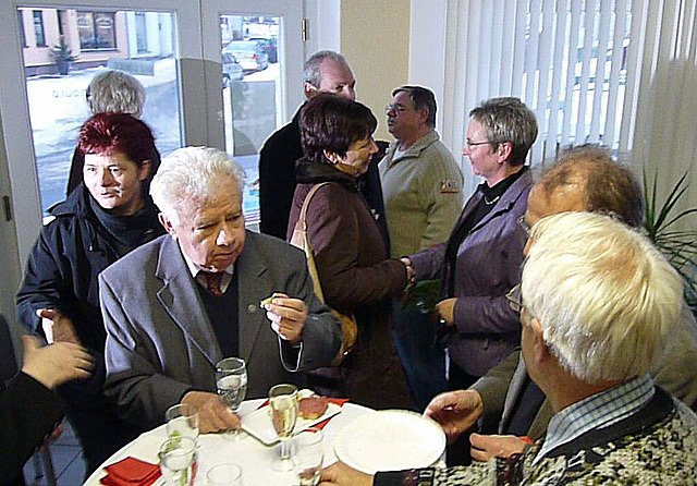 Nach dem mit einem Glas Sekt angestoßen worden war, wurden bei einem Imbiss weitere Gespräche geführt. Und genügend Gesprächspartner war anwesend, da Vertreter von vielen Vereinigungen und Verbänden gekommen waren, ob es die Landsenioren, der Bauernverband, Vertreter der Arbeitsloseninitiative, des Kreisverbandes der Behinderten oder des Kreisverbandes des Blinden- und Sehschwachenverbande war.