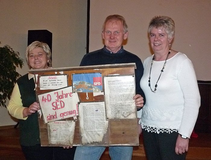 In der Bildergalerie zeigt sich Rolf Gnadel mit SPD-Mitgliedern der Gemeinde Allmenhausen und einer Wandzeitung aus der Wendezeit.