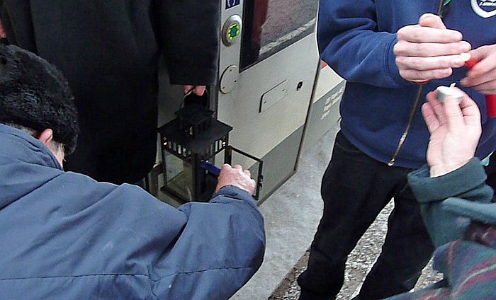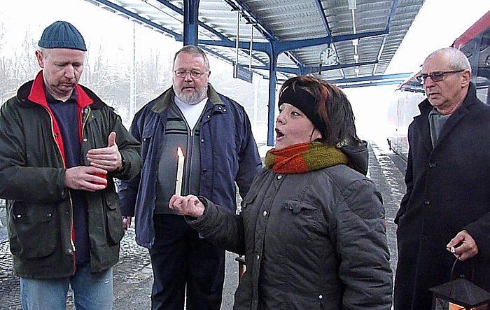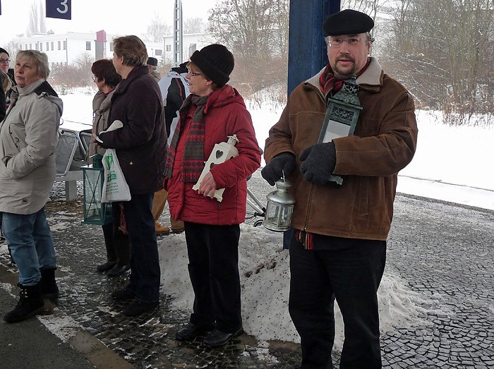 Auch dieses Jahr waren wieder zahlreiche Vertreter von Kirchgemeinden zum Hauptbahnhof nach Sondershausen gekommen, um das Friedenslicht für ihre Gemeinden in Empfang zu nehmen. Natürlich waren auch wieder Vertreter aus dem fernen Holzthaleben dabei, wie schon immer in den letzten Jahren. Und dieses Jahr durfte auch das Licht in aller Ruhe in Empfang genommen werden. Im vorigen Jahr hatte die Bahn die Türen sehr schnell geschlossen.