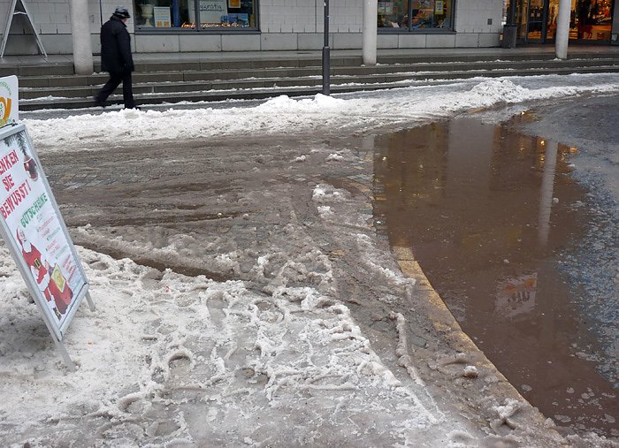 Nun ja, heute wird es bei Schnee und Eis bestimmt wieder schöner. Tauwetter ist leider oft mit solchen Annehmlichkeiten verbunden, besonders dann, wenn die Gullys durch Schnee und Eis verdeckt sind.