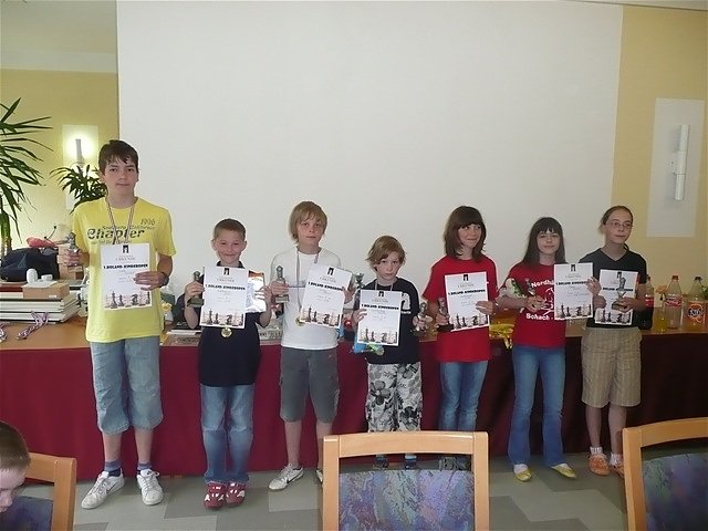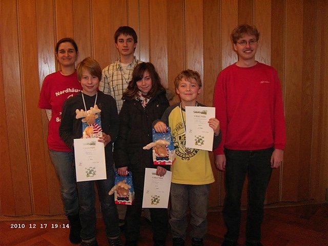 Thüringer Mannschafts Meisterschaft (Hainrode)Im Lauf der Saison 2009/10 hat die U12 Mannschaft in der Bezirksliga Nord gespielt (Christian Hentrich, Justin Kowitz, Jasmin Pfleger und Luca Kowitz) und den 3. Mannschaftsplatz belegt. Deshalb bekam die Mannschaft die Möglichkeit an der Thüringer Mannschaftsmeisterschaft teilzunehmen, die in Hainrode stattfand