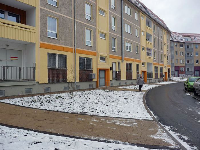 Nach der Zusicherung von Fördermitteln des Landes und der Stadt Sondershausen konnten die Planungen schließlich ab August dieses Jahres umgesetzt werden. Entstanden ist seitdem u. a. eine neue Wegeführung unter Beibehaltung der gleichen Anzahl von PKW-Stellplätzen wie zuvor. Darüber hinaus wurden attraktive Grünflächen sowie ein neuer Mülltonnenstandort angelegt. Insgesamt wurden 450.000 Euro verbaut.