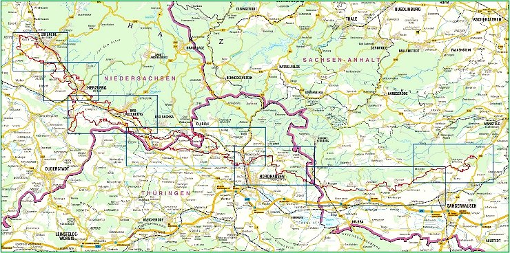 Der Karstwanderweg führt durch eine einzigartige Naturlandschaft von Förste bei Osterode in Niedersachsen bis Pölsfeld in Sachsen-Anhalt. Karsterscheinungen reihen sich am südlichen Harzrand perlschnurartig aneinander: Höhlen, Erdfälle, Karstquellen, Bachschwinden, Felsen, weiße Wände und viele weitere Phänomene des grünen Karsts erschließt dieser überregionale Wanderweg, der aus beiden Richtungen erkundet werden kann. Das rund 2,70 Meter lange, zieharmonikaartig auf Taschenformat gefaltete neue Wanderleporello stellt den gesamten Karstwanderweg mit rund 230 Kilometern Länge von Sangerhausen bis Osterode im Maßstab 1:33.000 dar.
