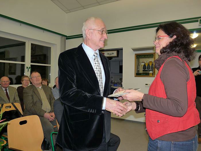 Bürgermeister Uwe Vogt (SPD) übergab Sanitätsrat Dr. Günther Abel die Ehrenurkunde als Ehrenbürger der Stadt Ebeleben. Ehrenbürgerschaft ist nicht mit Geld aufzuwägen, sagte Bürgermeister Vogt. Mit der Ehrenbürgerschaft wurde das Lebenswerk von Dr. Günther Abel gewürdigt. Er hat für die Gesundheit der Region Ebeleben und zeitweilig bis Keula und Großenehrich viel getan, so Vogt. Am 25.1.1932 in Guatemala geboren, weil seine Eltern damals dort arbeiteten. Deshalb spricht Dr. Günther Abel auch recht gut spanisch, wie Uwe Vogt verriet, ein Umstand den viele so gar nicht kannten.