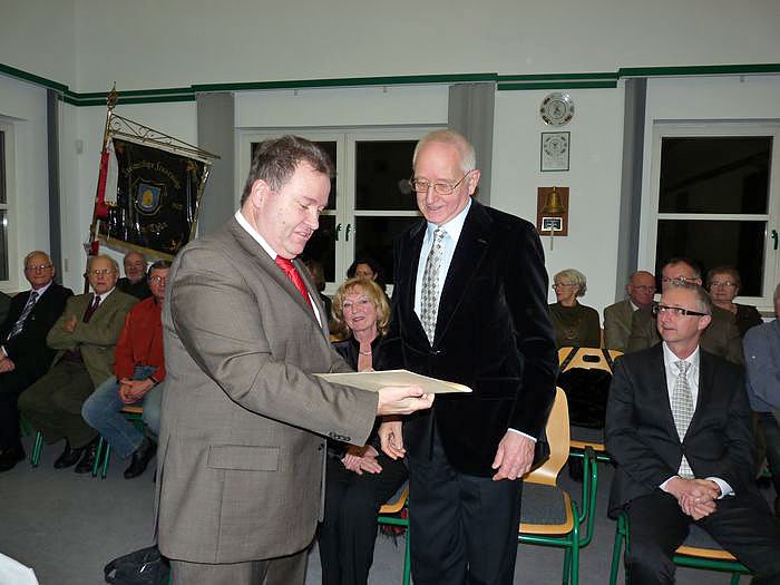 Nun sei zum Abschluss auch das Rätsel um die Zahl der Ehrenbürger verraten, den es sind deren gerade mal zwei, Dr. Günther Abel und Otto Thonhofer, Pfarrer im Ruhestand, die zum Glück kn auch vor die Linse bekam.