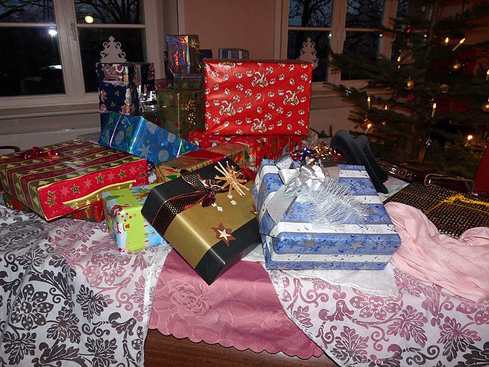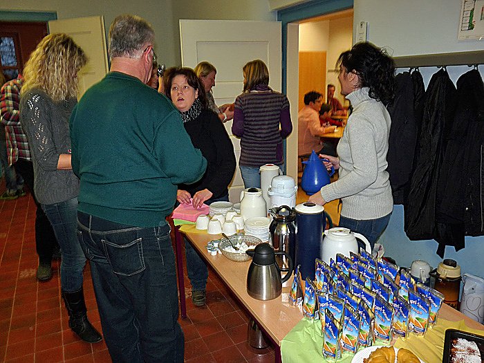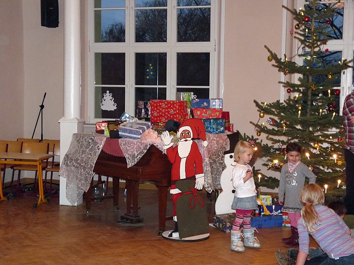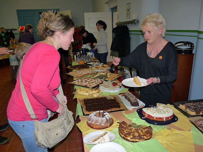Viele Eltern, besonders natürlich die Muttis, hatten mit dem Backen von vielen Kuchen dafür gesorgt, dass man sich vor dem Weihnachtsspiel und natürlich auch danach mit Kaffee und Kuchen stärken konnte. Auch hier ging der Erlös, wie schon bei den Basarprodukten der CSC GmbH zu Gunsten von Schulprojekten, so für den Spielplatz oder auch für das Zirkusprojekt.