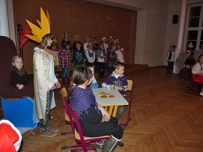 Höhepunkt der Weihnachtsfeier war wieder das Theaterstück. Es war wieder eine tolle Aufführung mit viel Musik, die da von den Schülerinnen und Schülern geboten wurde, ob Theatergruppe, Tanzgruppe oder Chor. Erzählt und gesungen wurde die Geschichte, "Der wundersame Stern". Die Kinder hatten sie mit Musiklehrerin Manuela Hohm einstudiert. Auch hier ging es eher nachdenklich zu, denn die Geschichte spielte auch von der Hatz der Menschen nach Geld. Es war eine großartige Aufführung und man darf schon gespannt auf das nächste Jahr sein.