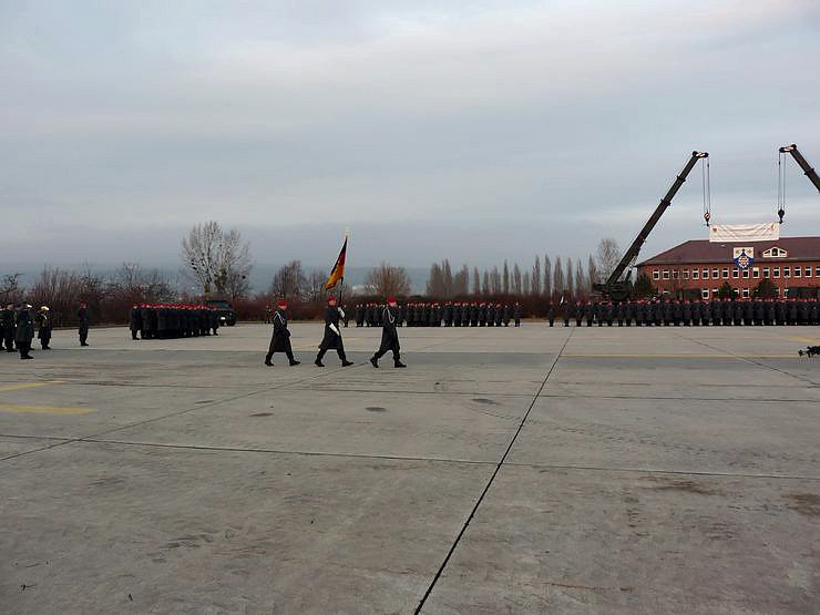 Seit rund Oktober sind die 442 Soldaten aus Mazar-e Sharif (Afghanistan) zurück. Nach verdientem Urlaub und so genannten Rückkehrerseminaren wurden sie heute in der Kyffhäuserkaserne Bad Frankenhausen offiziell aus dem Auslandseinsatz empfangen. Am Nachmittag fand auf dem Appellplatz der Empfang der Soldaten statt, zur der in etwa 460 Soldatinnen und Soldaten angetreten waren.