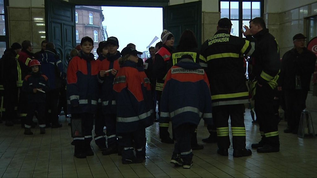 Kurz nach 11 Uhr kam der Zug aus Leinefelde am Bahnsteig 3 des Nordhäuser Bahnhofes an. Dort hatten sich Mädchen und Jungen von 16 Jugendfeuerwehren des gesamten Landkreises versammelt und teilten das Licht.
