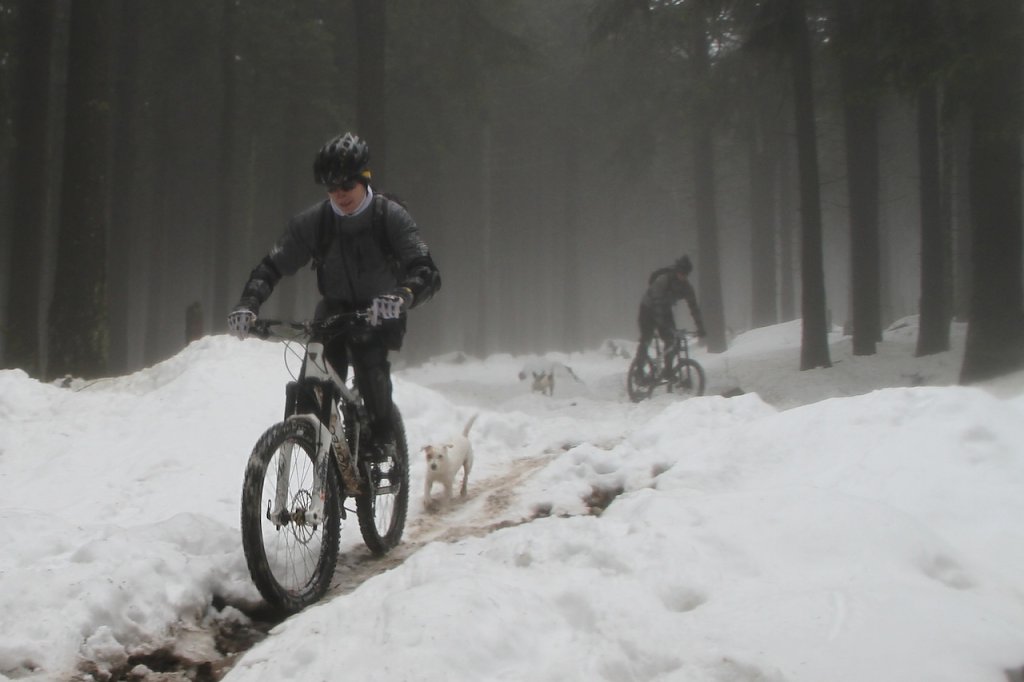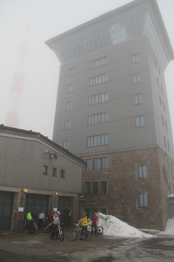 Pünktlich um 9 Uhr starteten ca. 30 Fahrradbegeisterte (und zwei kleine Hunde) zur traditionellen Brockenbefahrung am Heiligen Abend. Nach rund einer Stunde standen alle vor dem Brocken-Restaurant.