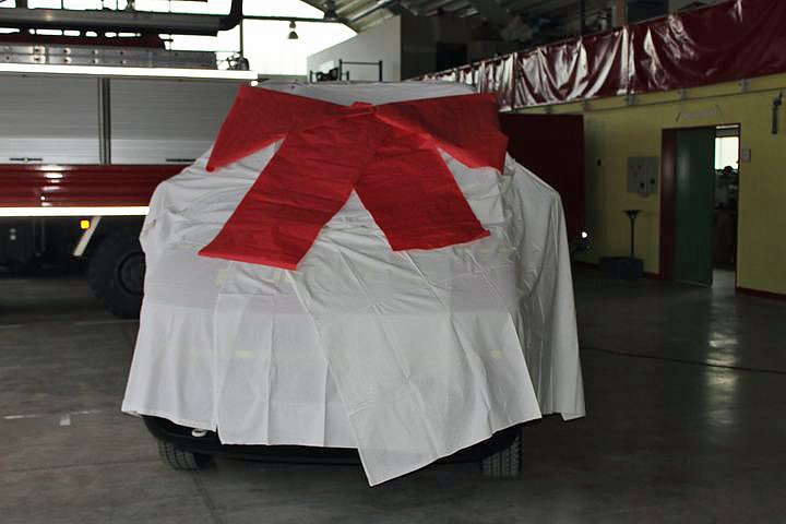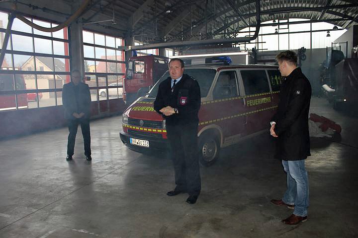 Zusammen mit Markus Hercher (li.) hatte Strejc ein neues Fahrzeug enthüllt, das am Nachmittag der Jugendfeuerwehr Bad Frankenhausen übergeben worden war. Markus Hercher vom gleichnamigen Autohaus in Leipzig hatte das Fahrzeug für die Jugendfeuerwehr gesponsert.