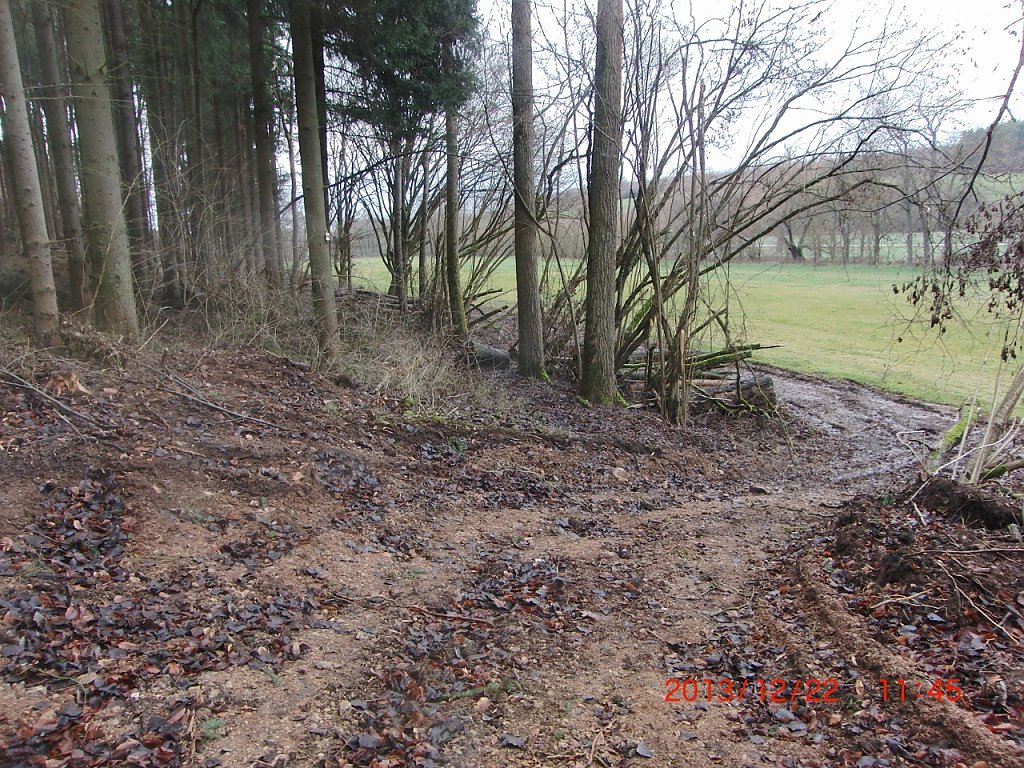 Zum einen erfolgte dessen Befahrung mit bulldozerähnlichen, schweren Fahrzeugen, die einen Radstand von mehr als zwei Metern auswiesen, zweitens lagern auf relativ weiten Strecken direkt auf und unmittelbar am Weg, sauber gestapelt, große Mengen Stammholz und zum dritten ist der Weg durch bei Rodungsmaßnahmen angefallene, nicht weggeräumte Zweige unbenutzbar.