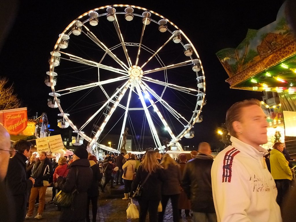 Das lag natürlich am Zeitpunkt, kurz vor Heiligabend und am verkaufsoffenen Sonntag hier in Halle. Wir hatten den Eindruck, dass viele noch auf der Jagd nach Geschenken waren, aber ein Blick in die Gesichter der meisten Menschen verriet uns das alle sehr entspannt und fröhlich unterwegs waren.