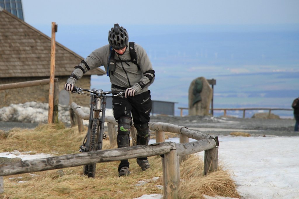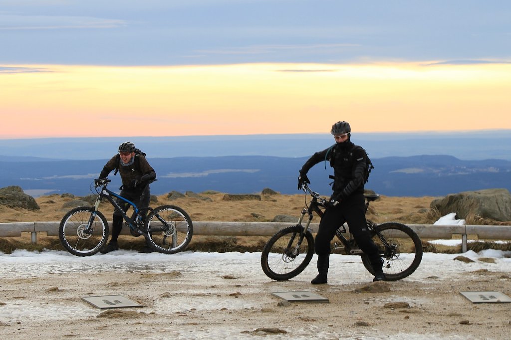 Über 40 winterfeste Biker trafen sich gegen 9 Uhr in Schierke auf dem Parkplatz, um den Heiligen Abend mit körperlicher Anstrengung einzuläuten. Man kann nicht von strahlendem Sonnenschein sprechen, aber das Wetter war trotzdem akzeptabel. Temperaturen über Null sowie eine schöne Fernsicht belohnten die Teilnehmer auf dem Weg zum Gipfel.
