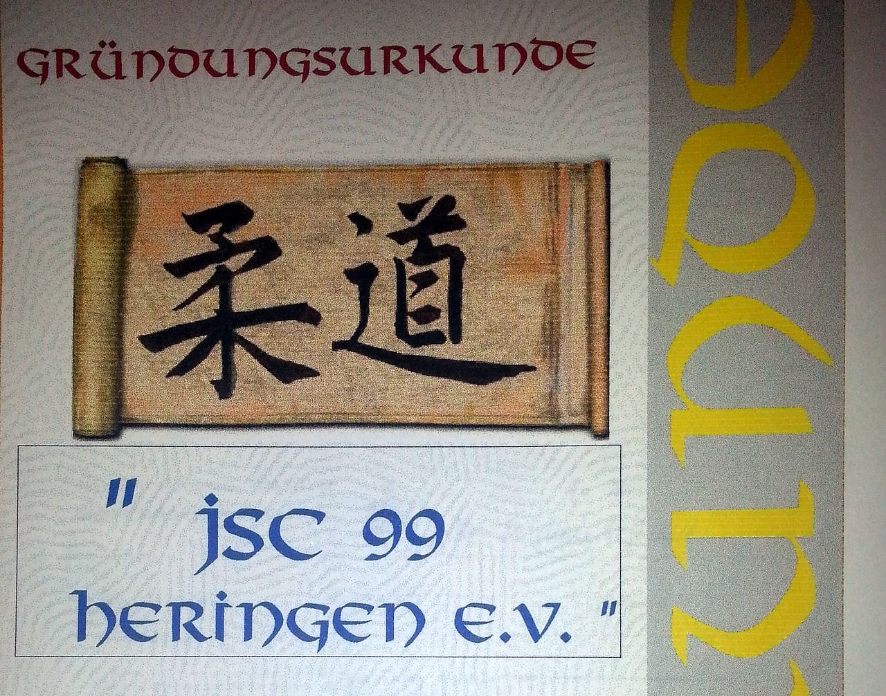Viele der damaligen Erstmitglieder hatten sich zuvor in der Abteilung Judo des Sportvereines SV Germania engagiert und wollten nun eigenständig ihren Sport und das Wettkampfgeschehen organisieren und weiter betreiben. Für die langjährige Treue dem Verein gegenüber bedankt sich der JSC 99 Heringen bei den Gründungsmitgliedern, Manuela Söllner, Waldemar Benndorf, Maik Schröter, Peter Krenz und Tino Benndorf.