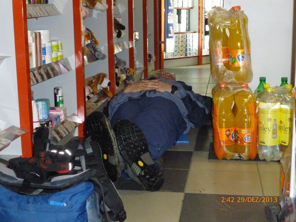 Später, kurz vor Klingenthal, suchten die Teilnehmer eine informierte Tankstelle heim: Mancher nutzte den Fußboden für eine kurze, entspannende Ruhepause, der Pächter jedenfalls freute sich über großen nächtlichen Umsatz.