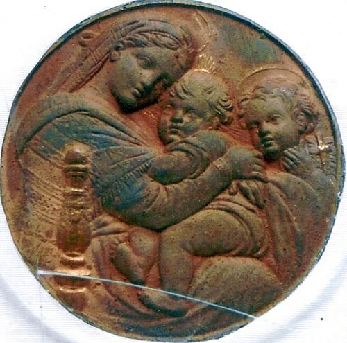 Wie es der Zufall will, begegnete mir beim Schreiben mehrerer Kapitel über die Frau Wilhelm von Humboldts eine kleine Darstellung dieser Komposition im alten Gemäuer des Walkenrieder Hofes, dem Kunst-Depot der Stadt Nordhausen. Ich entdeckte ganz unerwartet ein hölzernes Bildkästchen mit den Maßen 15,00 cm x 12,5 cm x 2,00 cm. Im Mittelpunkt erblickte ich das kleine Rundbild der Madonna della Sedia als Ton-Relief, einige Teile schimmern kupfern. Das Bildchen hat den Durchmesser von 6,50 cm. Ausgelegt ist das Kästchen mit weißem Damast, so dass das Braun des Tones sich gut abhebt. Eine Glasplatte schirmt oben ab und eine schmale Bordüre läuft wie ein Rahmen drumherum.