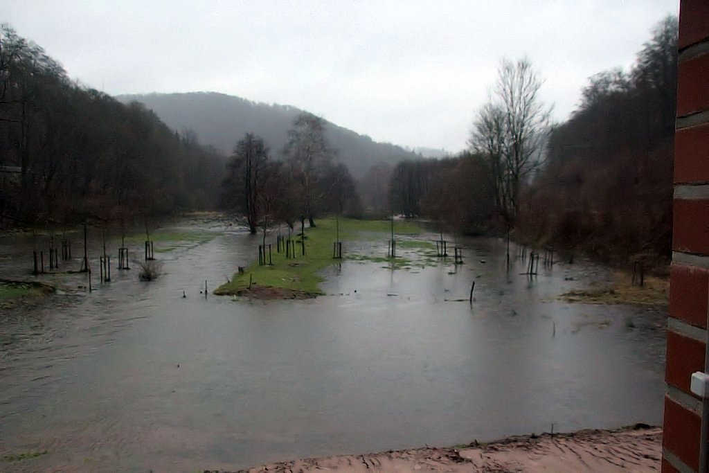 Gleichbleibende Pegelstände Die Pegelstände der Zorge und der Bere haben sich im Verlaufe des Tages nicht weiter erhöht. Peter Blei machte sich dennoch auf, um hinter Ilfeld Bilder von der imposanten Bere mitzubringen...