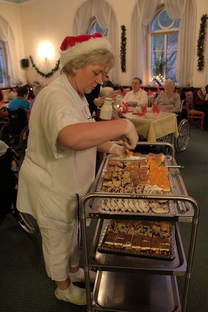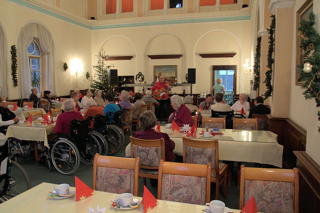 Dass der Speiseraum an diesem besonderen Abend nicht gant gefüllt war, lag auch in der Tatsache begründet, dass eine Heimbewohner von ihren Famiienangehörigen abgeholt wurde und somit den Heiligen Abend im Kreise der Familie feiern konnten.