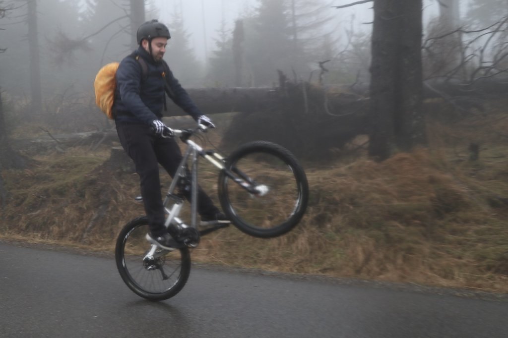 Der traditionelle Christmas-Ride begann, wie schon seit vielen Jahren am 24. Dezember, pünktlich 9 Uhr in Schierke. Das Teilnehmerfeld war noch nie so groß. Neben einigen Wanderern, waren es vor allem die Fahrradfahrer, die heute das Bild auf der Brockenstraße bestimmten.