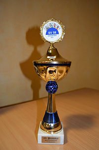 Sieger Peter Schäfer mit der Vorsitzenden des SV 58 Esperstedt, Katy Schmidt
