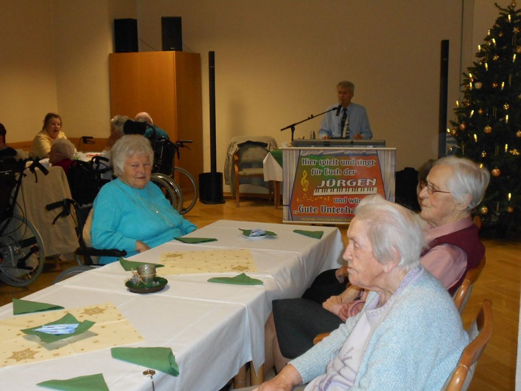 Am 22.12.2015 fand unsere große Weihnachtsfeier statt. Hier sorgte Herr Töpfer aus Clingen für beste musikalische Unterhaltung und weihnachtliche Besinnlichkeit. Das Team der Betreuung und Ergotherapie brachte sich mit Gedichtvorträgen und dem Vorsingen von Weihnachtsliedern in das Programm mit ein.
