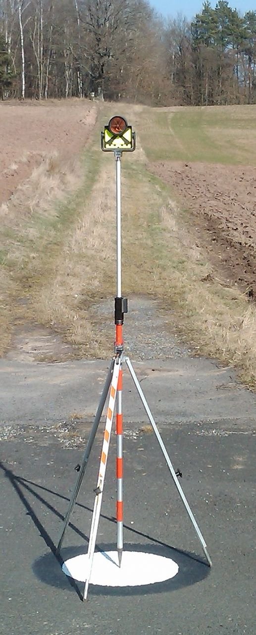 Diese Vorbereitungsarbeiten umfassen das Signalisieren von Passpunkten. Dabei handelt es sich entweder um schwarz umrandete weiße Kreismarkierungen (ca. 0,5 m im Durchmesser) oder um rechtwinklig zueinander angeordnete weiße Plastikfolien (ca. 1,4 m x 0,5 m). Erst nach erfolgreicher Befliegung werden die Plastikfolien in der Örtlichkeit wieder beräumt. Dies kann durchaus erst Ende Mai erfolgen.