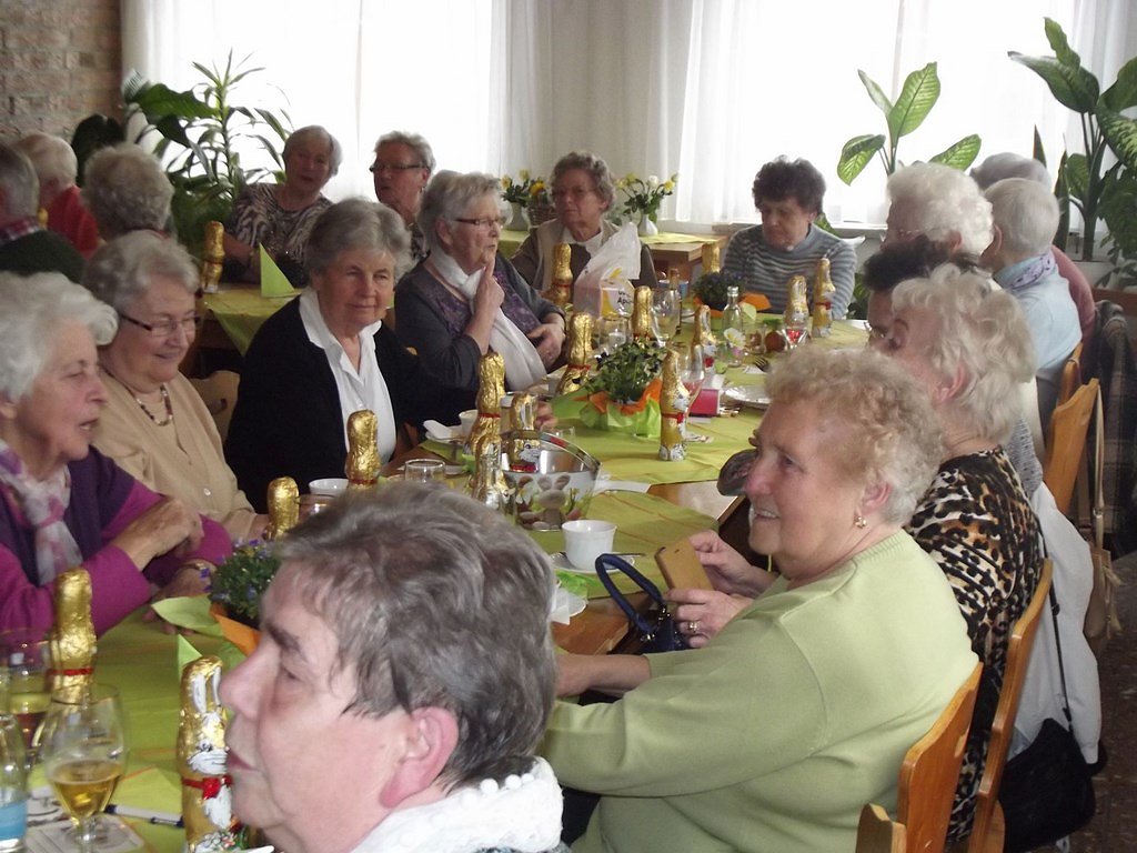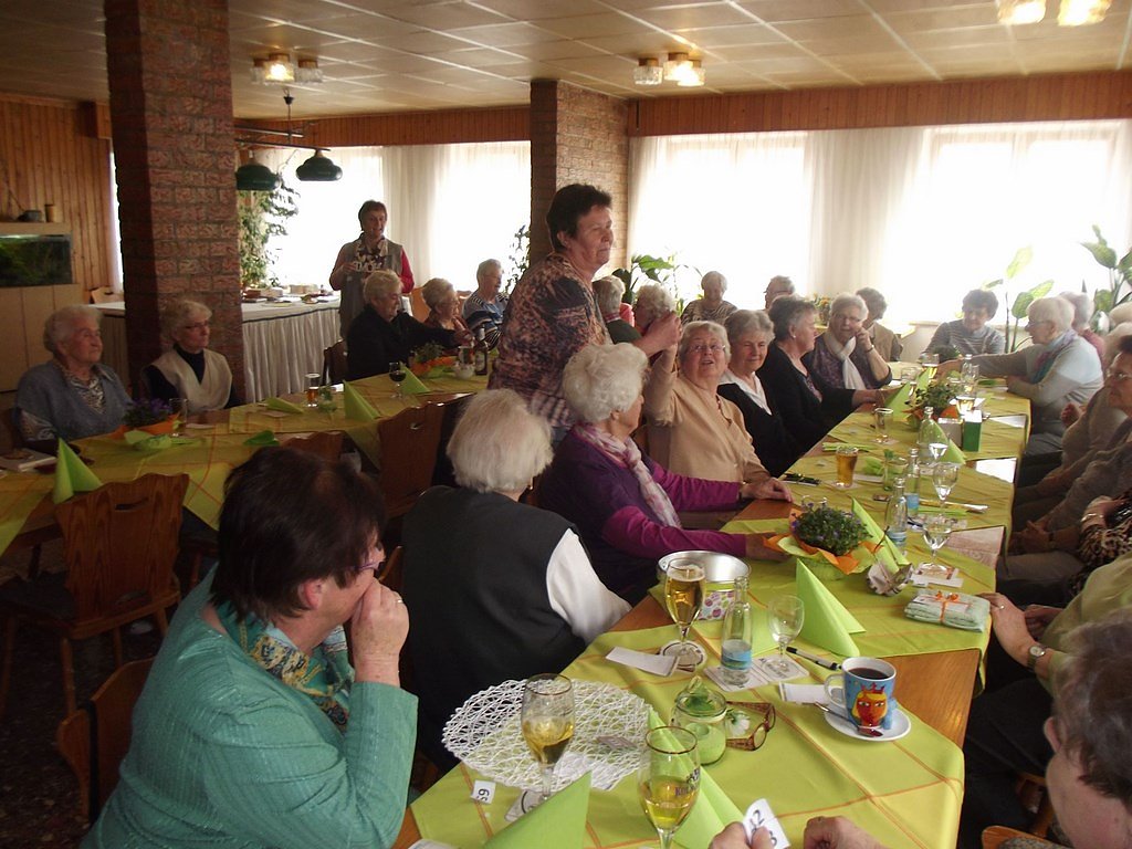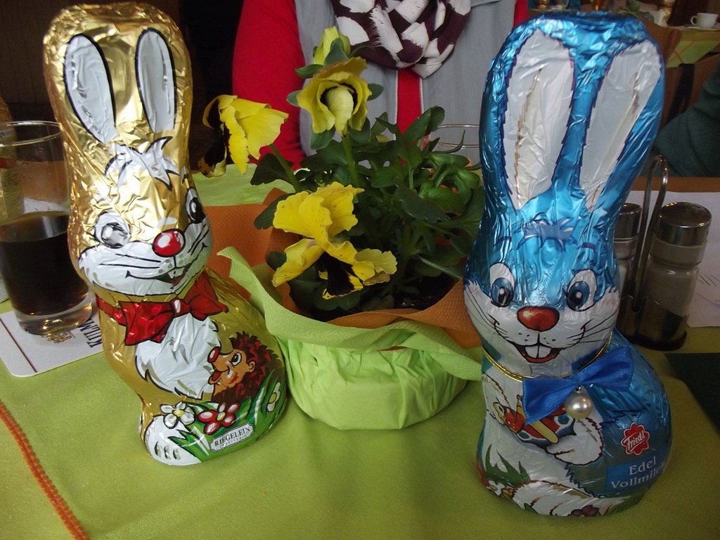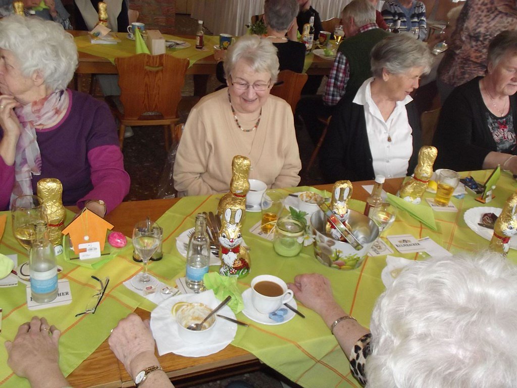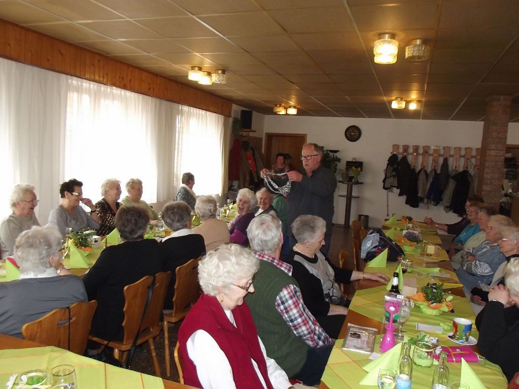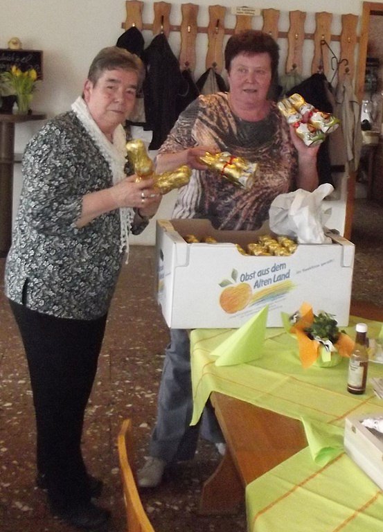 Der ausgelobte Hauptgewinn war erst einmal ich (das war als Scherz gedacht). Nach meiner Frage an die Dame, ob denn noch Platz für mich sei, einigten wir uns auf einen kleineren Sachpreis für diese Losnummer. Anschließend wurde verkündet, dass der Osterhase für unsere Senioren doch noch etwas da gelassen habe. Jeder Gast erhielt einen großen Schokoladen-Osterhasen. Leider geht auch so ein lustiger und interessanter Nachmittag, wie immer, viel zu schnell zu Ende.