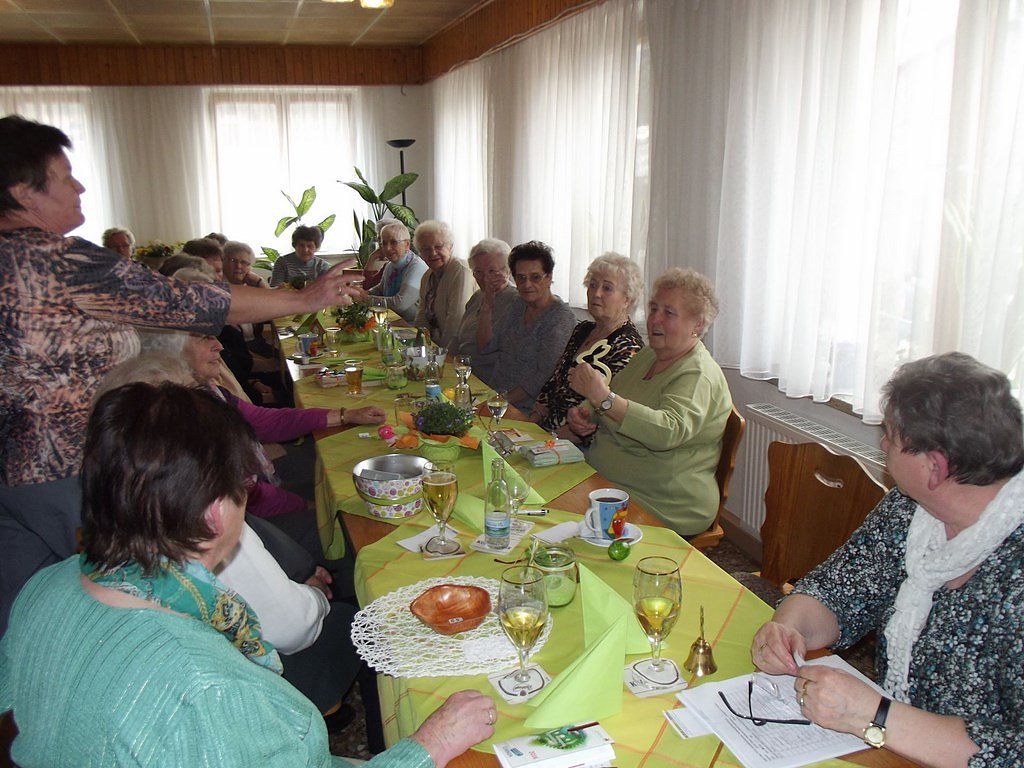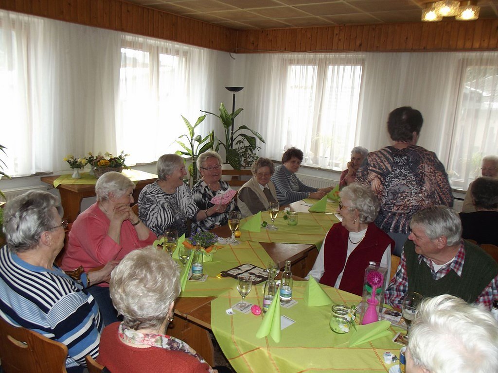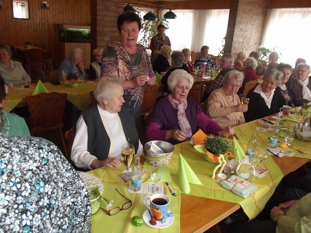 Nach der Kaffeetafel mit herzhaften Köstlichkeiten nach Wahl eröffneten wir die Los-Tombola. Jedes Los gewinnt, es gibt sogar einen Hauptpreis – hieß es. Vom Großpäckchen mit Taschentüchern bis hin zur Holz-Tee Box, die Vielfalt der ausgelobten Preise war groß. Da es keine Nieten gab, wurden auf manche gezogenen Zahlen gekaufte, bunte und gekochte Ostereier als Trostpreis ausgelobt. Meine Frau und ich auch zogen ebenfalls solch ein Osterei. Scherzhaft sagte ich dann: Dann reicht es ja für einen Eiersalat für uns beide.