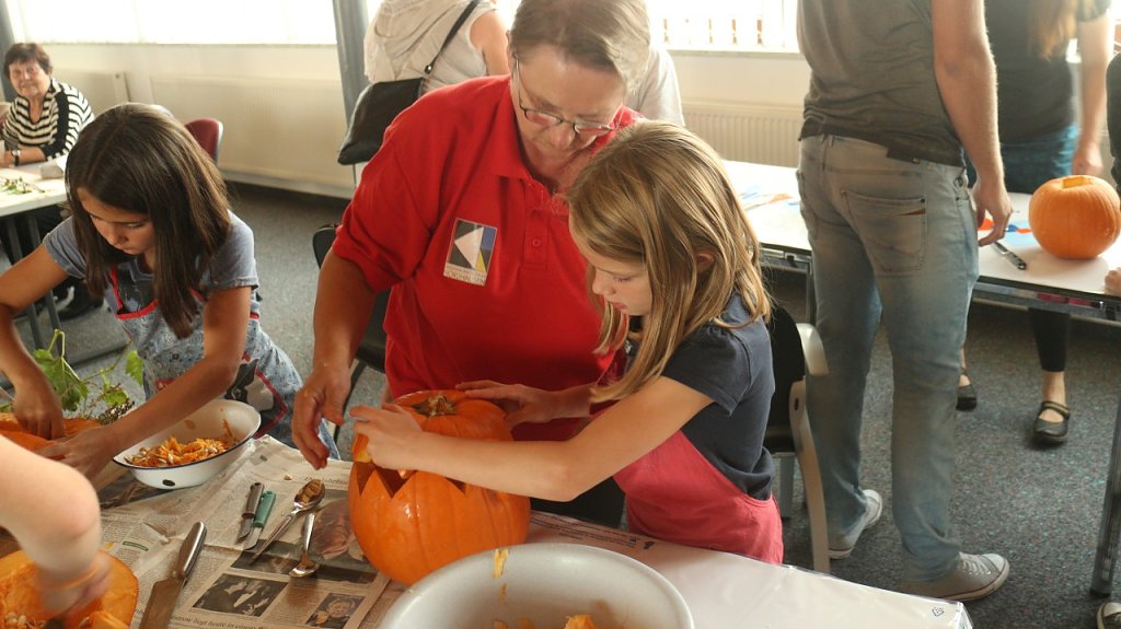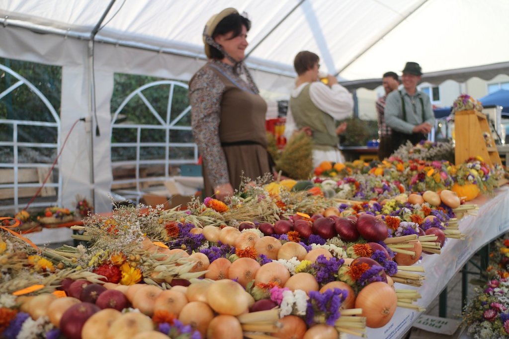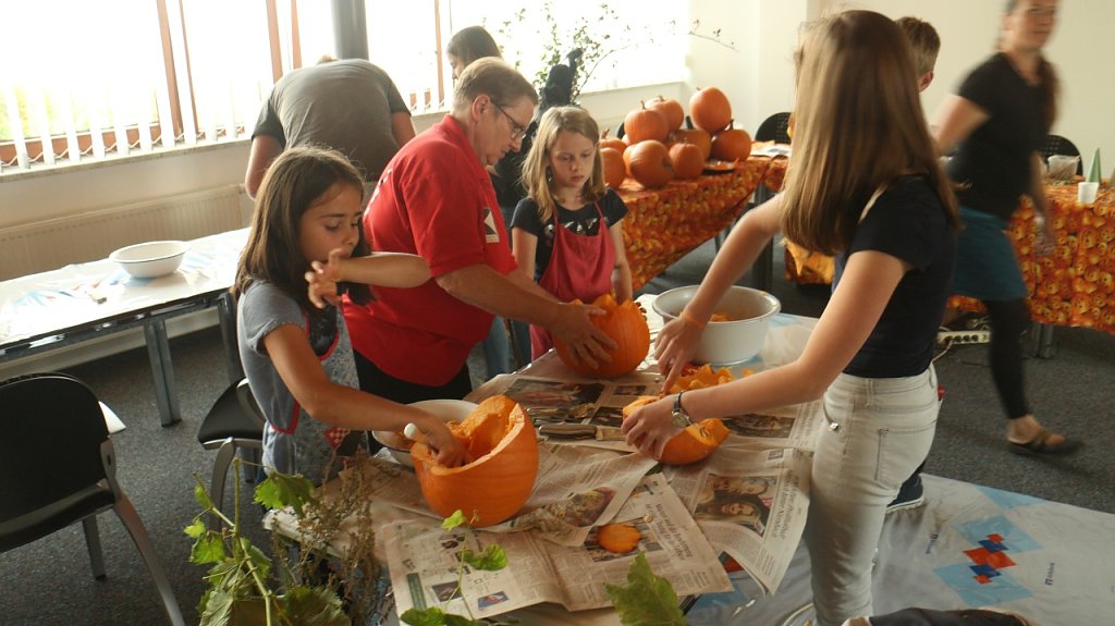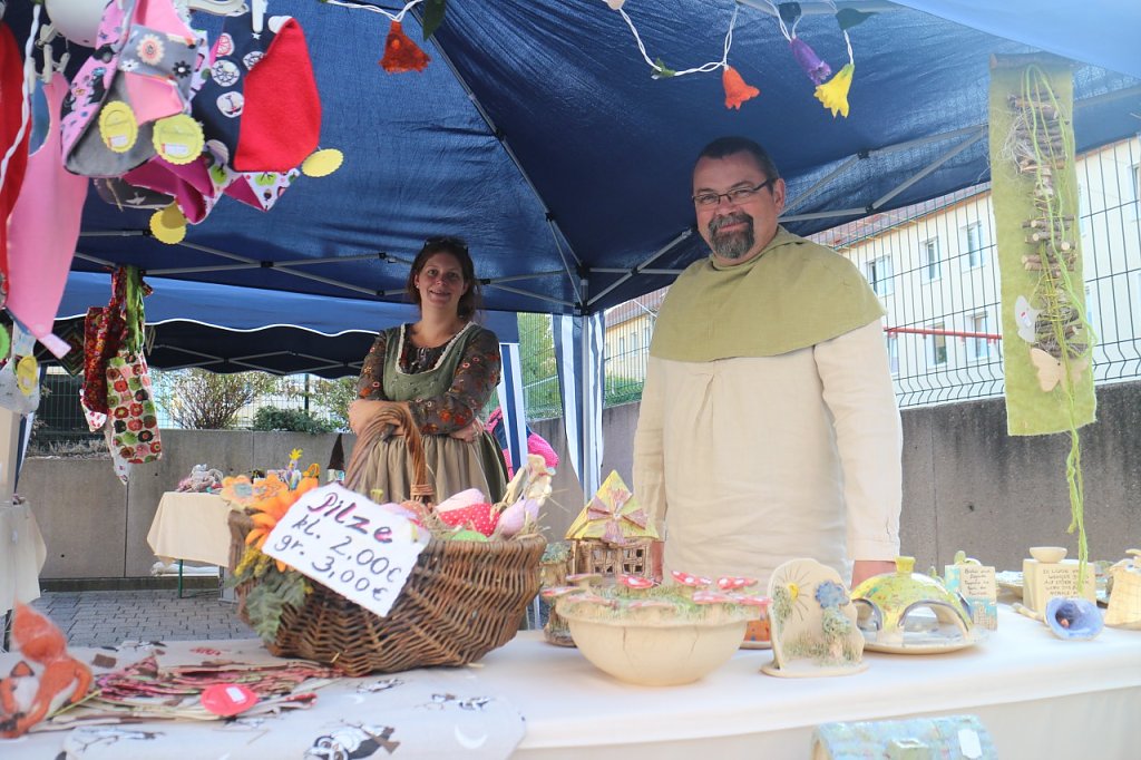 Die Musik kam von Ronald Gäßlein, Manfred Meinhardt zeigte wie das Drechseln von Hand funktioniert, die Mühlhäuser Werkstätten boten Korbflechten und Töpferware an, die Jugendkunstschule zeigte den kleinen Gästen, was man alles aus Kürbissen machen kann. Die Deko kam unter anderem vom Kindergarten Wirbelwind aus Niedersachswerfen.