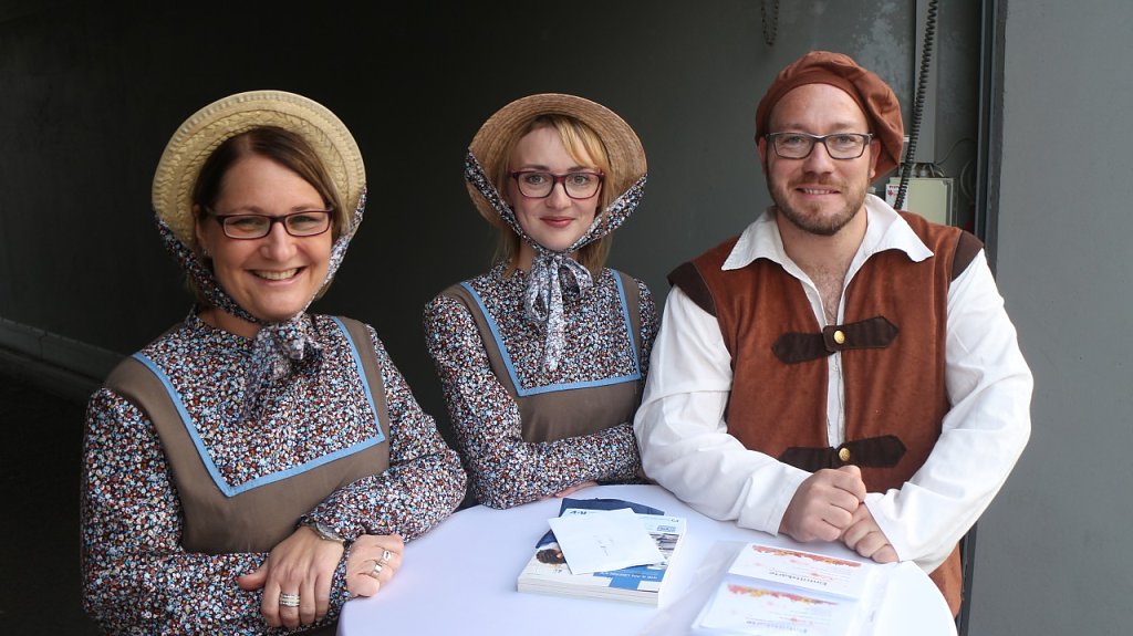 Eine Weihnachtsfeier gab es bei der Volksbank schon einmal, ein Sommerfest auch, jetzt war einmal der Herbst dran. Den Innenhof der Filiale am Taschenberg hatte man entsprechend der Jahreszeit geschmückt, die Mitarbeiter hatten sich frei nach dem Motto Erntezeit auf dem Land in Schale geschmissen,