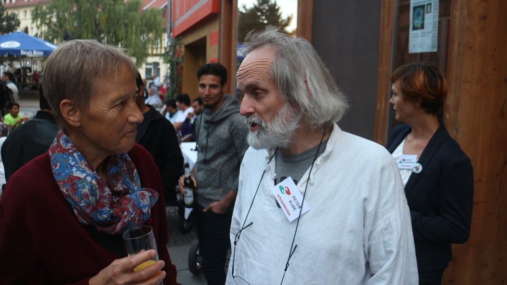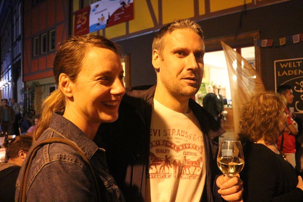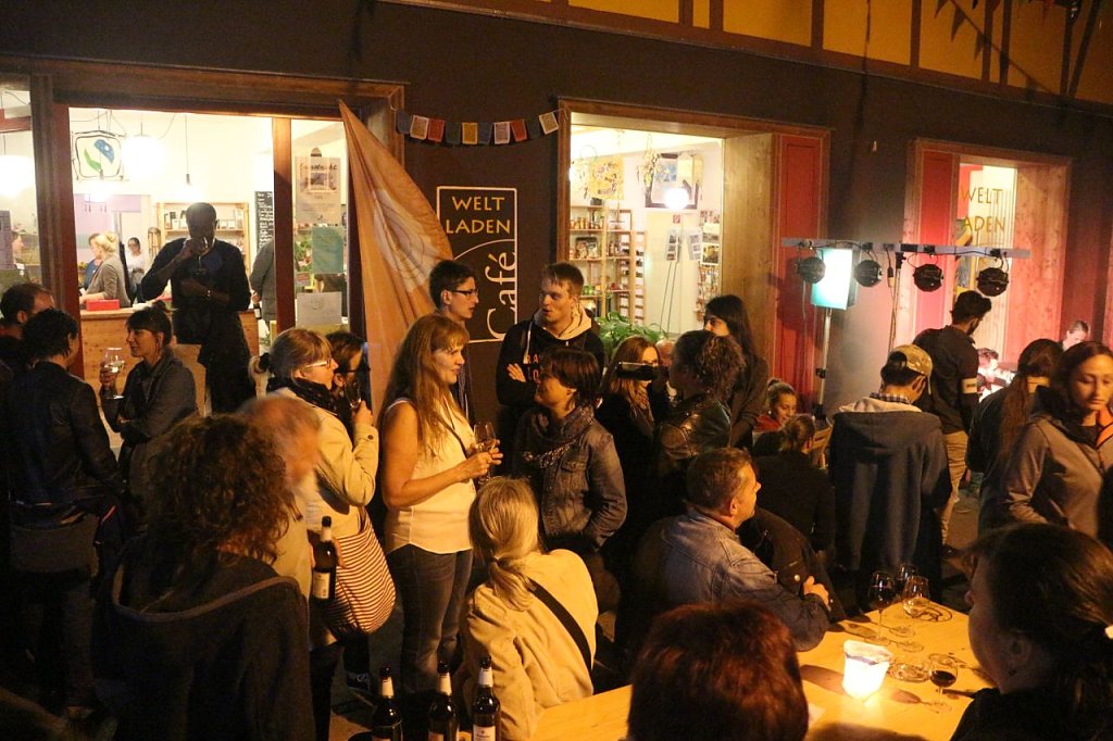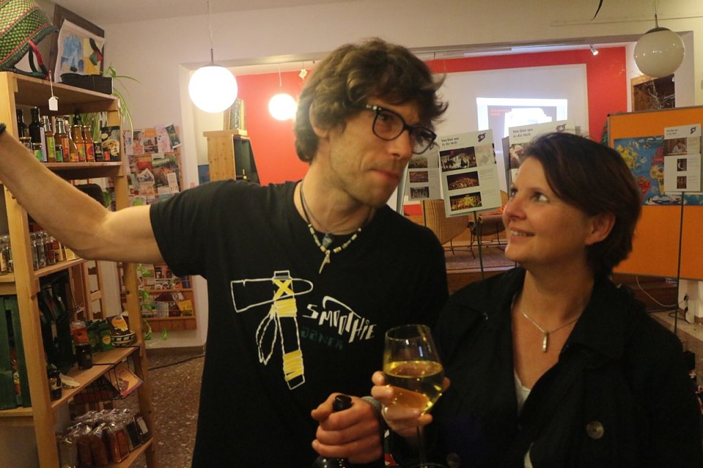 Den Geburtstag begann man mit ernsten Diskussionen. Thüringens Justizminister Dieter Lauinger weilte im Weltladen und sprach mit Vereinsgründer Peter Kube über das aktuelle Weltgeschehen, Flüchtlingspolitik und Religion.